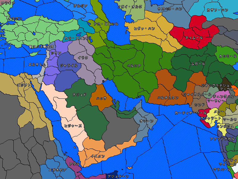 北米にルイジアナ、ケベック、カリブ海にハイチの海外領(ウトラメール、Outmer)を持ち、ナポリ、エルサレム、テンプル騎士団を保護下に置きます。