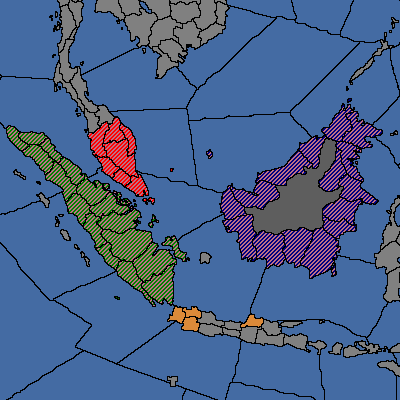 オレンジの州すべてと、紫、茶色、赤の範囲のいずれか2か所の州すべての領有が必要。領有しなかった州にはMalayaになったあとpermanent claimが得られる