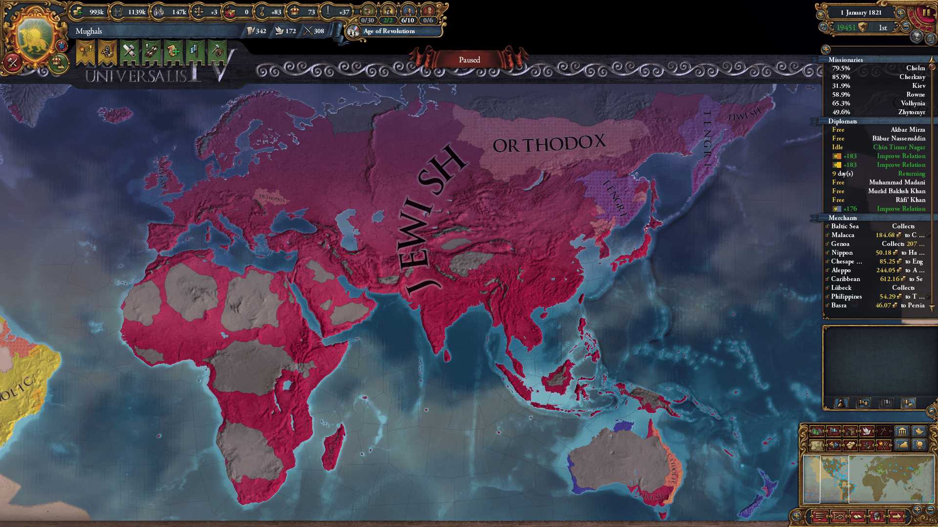 かといってEthiopiaでは終盤に改宗力が覚束ない。せめて地中海沿岸(エルサレムとか)にユダヤ州が1つでもあれば、別の戦略も考えられるのでしょうが…。