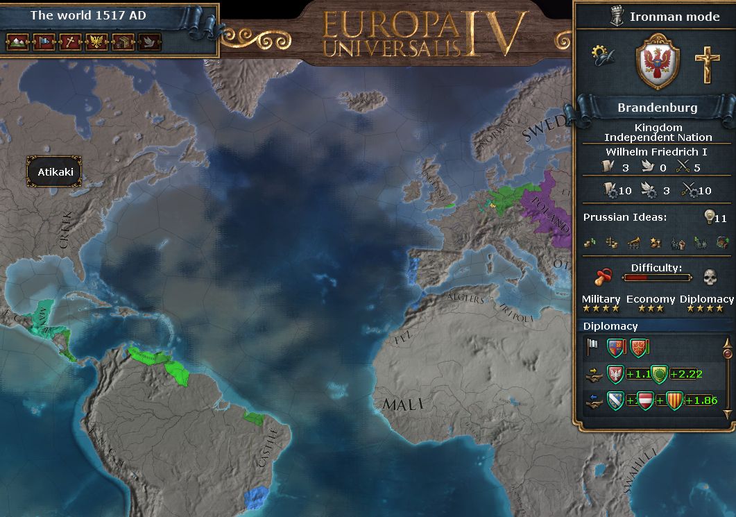 ドイツとプロイセン建国が可能になるADMレベル10まで実際に走り、
