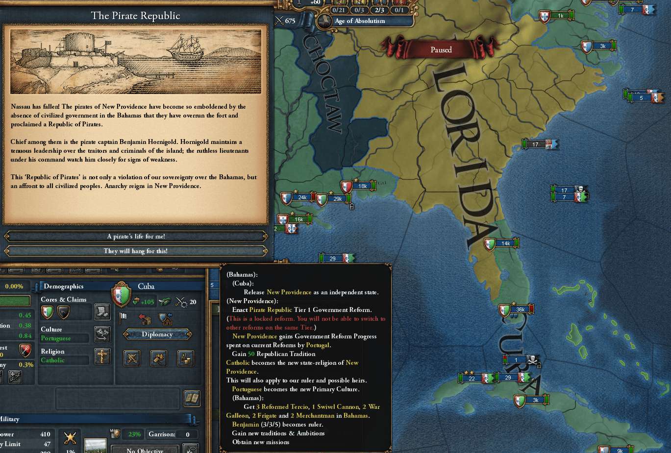 1656/10 イベント"The Pirate Republic"でNew_ProvidenceがCubaから独立してしまった😵