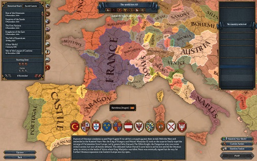神聖ローマ皇帝カール4世による金印勅書発布の年である、1356年12月25日からゲームが開始できる。