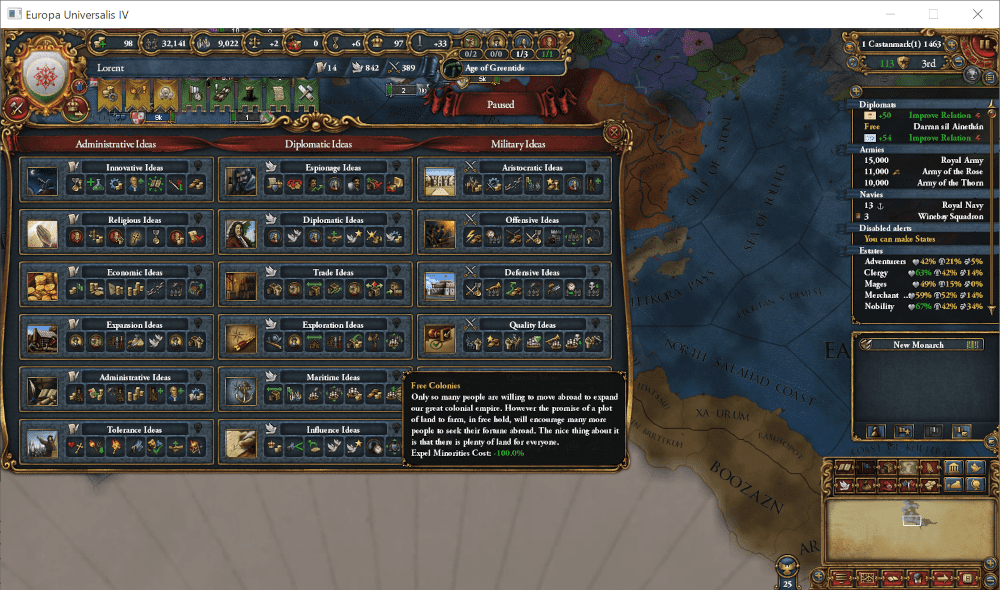 1463年1月、統治技術を5に上げ、一つ目のアイデア枠を解放します。